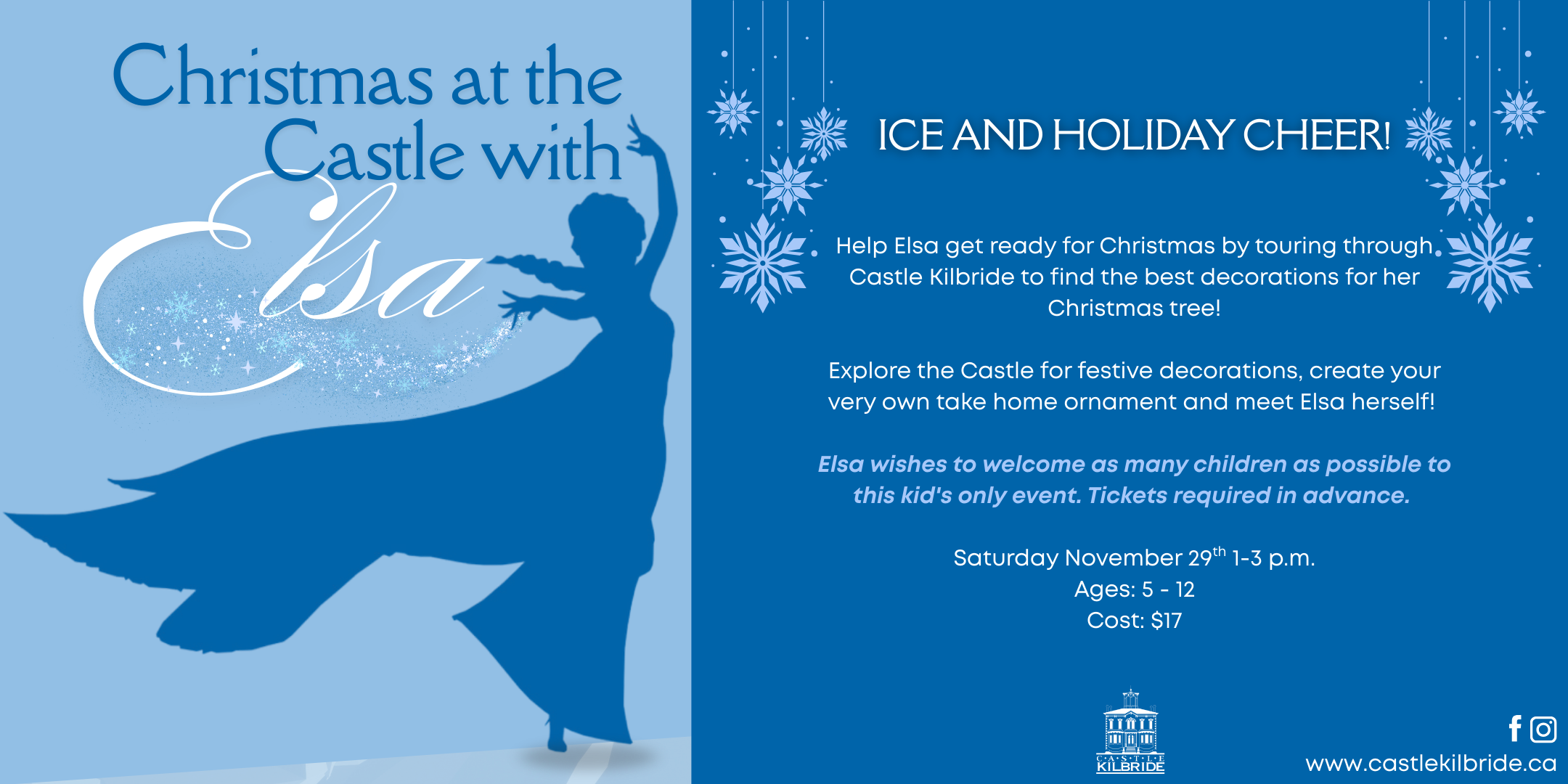 Explore the Castle for festive decorations, create your very own take home ornament and meet Elsa herself!